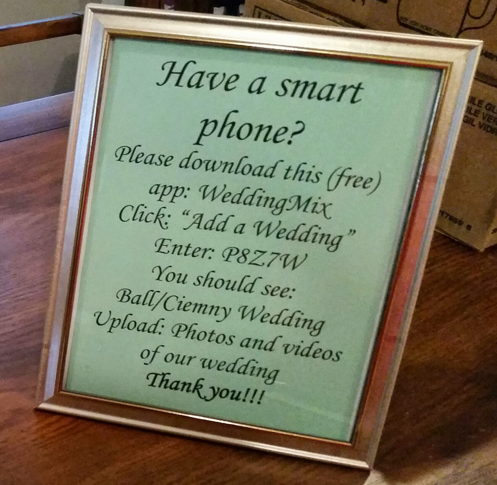 Do you remember my post about the WeddingMix app? If not, you can see it here. I decided to put together this cute little sign which will be displayed on the guest book table.